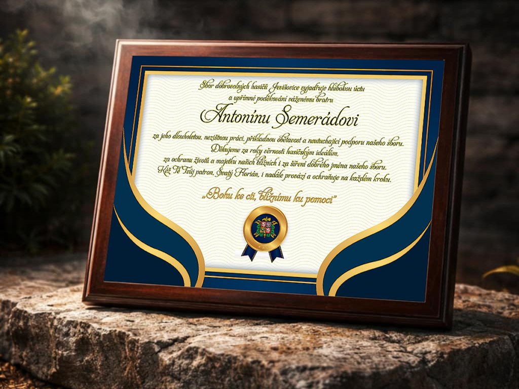 Poznámka: Uvedený text na plaketě je pouze ilustrační. Vlastní text si můžete libovolně navrhnout po vložení do košíku nebo jej uvést do poznámky v objednávce.