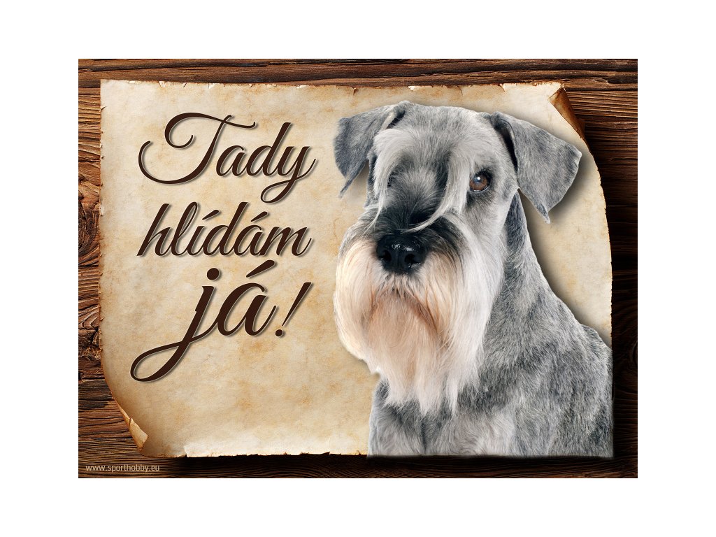 Cedulka Knírač, hliníková s nápisem "Tady hlídám já!" Kovová výstražná venkovní cedulka oznamující to či ono, že se ve vašem obydlí může návštěvník setkat s vašim čtyřnohým miláčkem a jeho teritoriem. Velikosti těchto cedulek jsou 15x11,25 a 20x15 cm. Cedulky jsou tištěny sublimační technologií Grawerton přímo na plech. Cedulky dodáváme běžně se zakulacenými rohy. Pokud budete chtít na cedulku vlastní text, napište nám jej do poznámky.