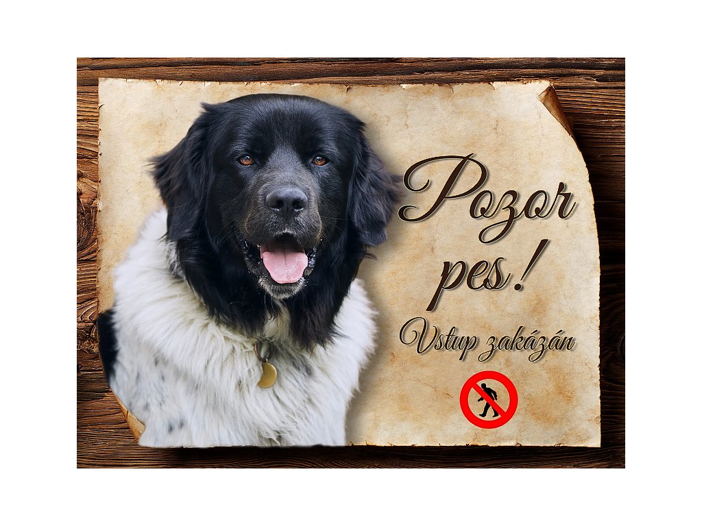 Cedulka s Český horský pes, hliníková s nápisem "Pozor pes! Vstup zakázán!" Kovová výstražná venkovní cedulka oznamující to či ono, že se ve vašem obydlí může návštěvník setkat s vašim čtyřnohým miláčkem a jeho teritoriem. Velikosti těchto cedulek jsou 15x11,25, 20x15 a 27x20 cm. Cedulky jsou tištěny sublimační technologií Grawerton přímo na plech. Cedulky dodáváme běžně se zakulacenými rohy. Pokud budete chtít na cedulku vlastní text, napište nám jej do poznámky.