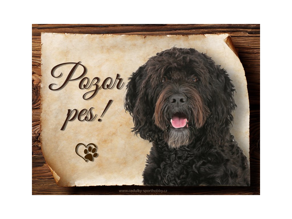 Cedulka s Francouzský vodní pes, hliníková s nápisem "Pozor pes!" Kovová výstražná venkovní cedulka oznamující to či ono, že se ve vašem obydlí může návštěvník setkat s vašim čtyřnohým miláčkem a jeho teritoriem. Velikosti těchto cedulek jsou 15x11,25 a 20x15 a 27x20 cm. Cedulky jsou tištěny sublimační technologií Grawerton přímo na plech. Cedulky dodáváme běžně se zakulacenými rohy. Pokud budete chtít na cedulku vlastní text, napište nám jej do poznámky.