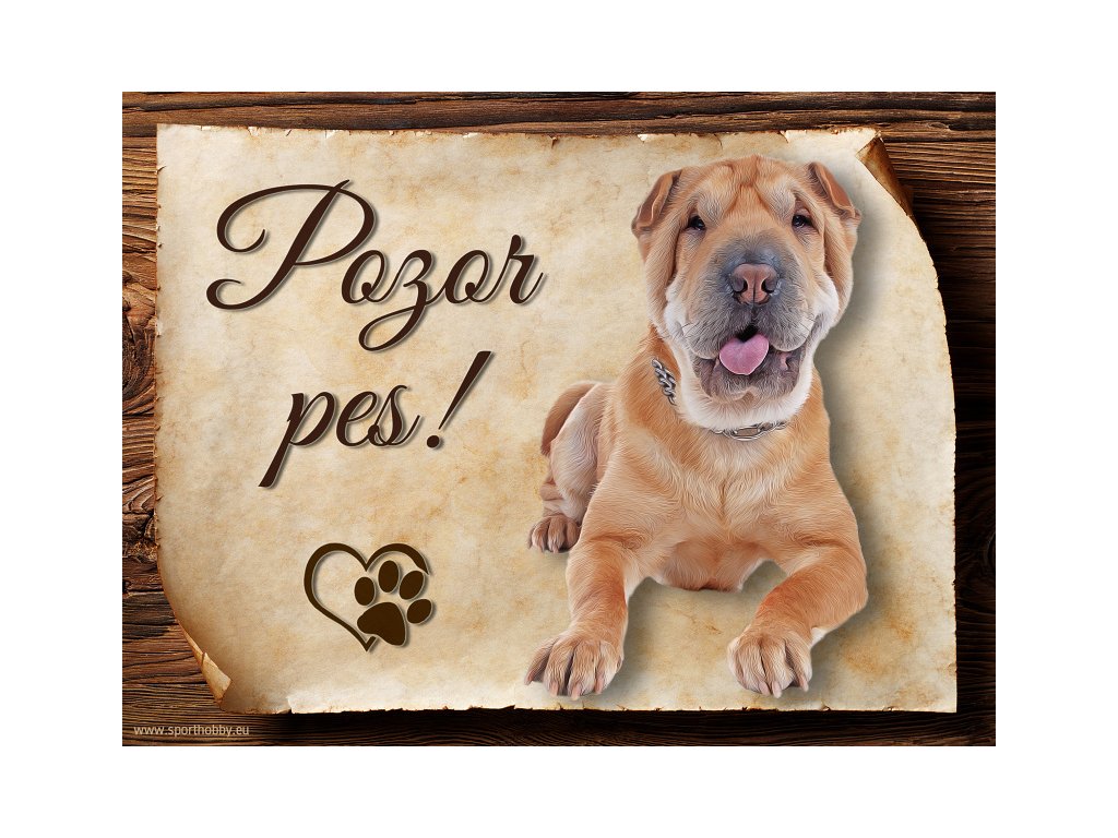 Cedulka s Šarpej, hliníková s nápisem "Pozor pes!" Kovová výstražná venkovní cedulka oznamující to či ono, že se ve vašem obydlí může návštěvník setkat s vašim čtyřnohým miláčkem a jeho teritoriem. Velikosti těchto cedulek jsou 15x11,25 a 20x15 cm. Cedulky jsou tištěny sublimační technologií Grawerton přímo na plech. Cedulky dodáváme běžně se zakulacenými rohy. Pokud budete chtít na cedulku vlastní text, napište nám jej do poznámky.